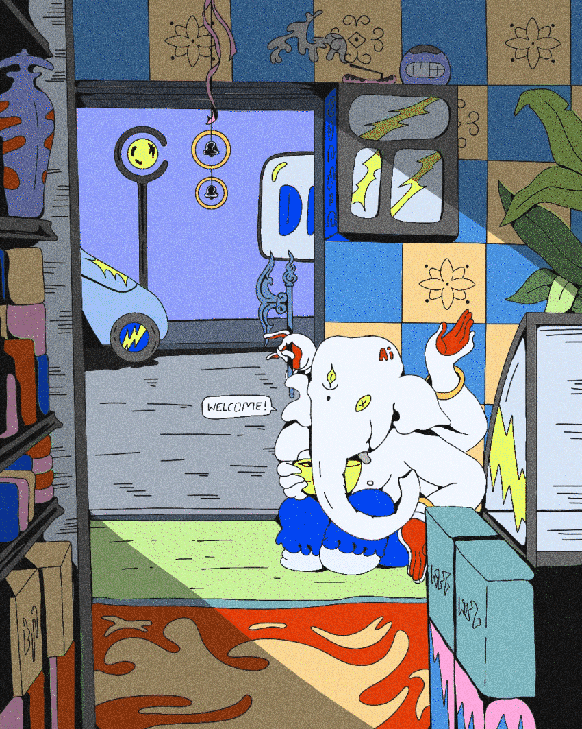In April 2025, I collaborated with Nikon Kwantu — the Animation Producer & Head of Development at Message Pictures — to design characters for an animated project, developed under the working title The Bride. The story follows a New York–based Indian deli owner and his seemingly perfect bride, who is later revealed to be an AI robot. My task was to create distinctive character designs that merge cultural influences with experimental color palettes, while giving the project a contemporary and futuristic edge that reflects my illustration style.